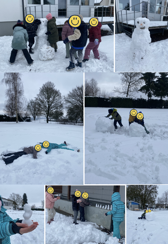 In der Bewegungspause nutzten die Schülerinnen und Schüler die Gelegenheit, sich so richtig auszutoben. Mit viel Begeisterung und Kreativität entstanden Schneefiguren, Schneeengel und sogar kleine Iglus. Überall wurde gelacht, gebaut und gespielt – der Enthusiasmus war deutlich spürbar.